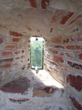 Efter denna grundliga genomgång av slottets olika delar klev vi ut genom porten och gick uppför sluttningen mot häktet – det var väl hög tid att spärra in dessa två geocachinggalningar!