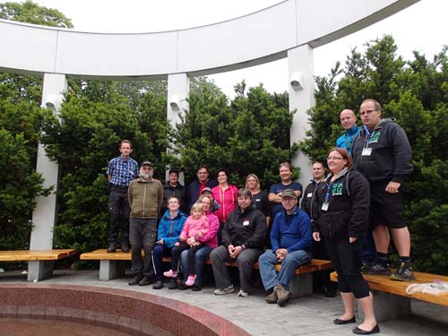 Tio minuter innan eventstart kom övriga arrangörer fram efter 94 kilometers cykling och 50 hittade burkar, alltså mer än dubbelt så många som vi hittat under vår 31 kilometer långa vandring denna dag. En efter en kom sedan cachare framsmygande ur buskarna, från Åland, Sverige och Finland. När alla var på plats blev det uppställning för gruppfotografering.
