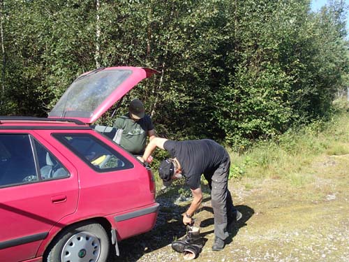 Trots att det skulle bli en av årets varmaste dagar beslutades sig det hårdföra burkletar gänget Hallén, Ingabo och TMR68 (i loggböcker ofta kända som H I T) för att ge sig ut på en heldags burkjakt. Under vår färd mot dagens stora cachekoncentration stannade vi givetvis för lite uppvärmning vid ”Tjipp tjillevippen nu åker vi till tippen!” och ”Giant leap or cold feets?”. Sedan var det dags att åka mot huvudmålet som var cacheserien i Eningenområdet med 30 cacher utspridda i skogen, de flesta i väg- och stiglöst land.