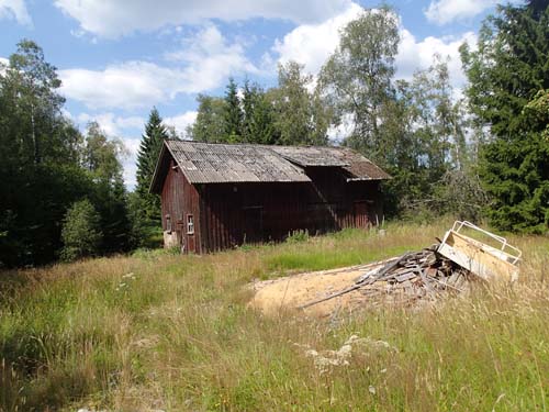 Mitt ute i denna djungel öppnade sig plötsligt landskapet och vi träffade på ett övergivet (?) torp.