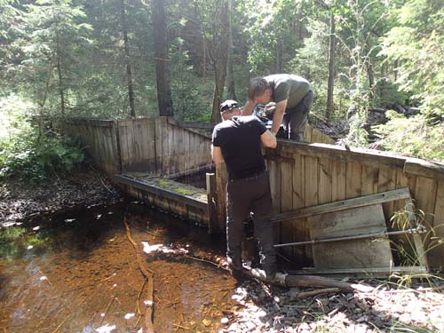 Strax bortanför torpet låg en av dagens små utmaningar, Laxtrappan. Här krävdes det en del funderande och prövande innan vi lyckades komma åt burken utan att få in allt för mycket vatten i kängorna!