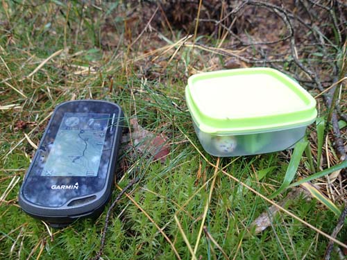 Idag varde än mindre tid för burkletande än i går, men åter hade jag turen att det publicerades en rykande färsk cache nära den plats där sturej igår arkiverade sin gamla. Det blev geo-kängorna på och sedan ut i skogen vid Puketorp för en ny jakt i gamla bekanta skogar.