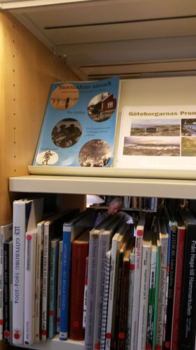 Under skylten ”Göteborgs Stad, Majorna-Linné” klev jag in och började den ovanliga sysslan att söka efter en cache bland böcker!