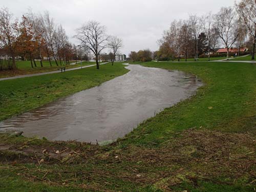 Skogen lämnade jag nu åter bakom mig och jag gick mot nästa gröna kulle ute i bebyggelsen, dessvärre blev det inte ett framgångsrikt besök, jag borde nog inte ge mig på burkarna i den serien! Större framgång hade jag vid ”Skitcachen” och därefter inträffade det otroliga, jag hittade cachen ”Hammerös små gröna kullar #4”, det går alltså att hitta dessa burkar!