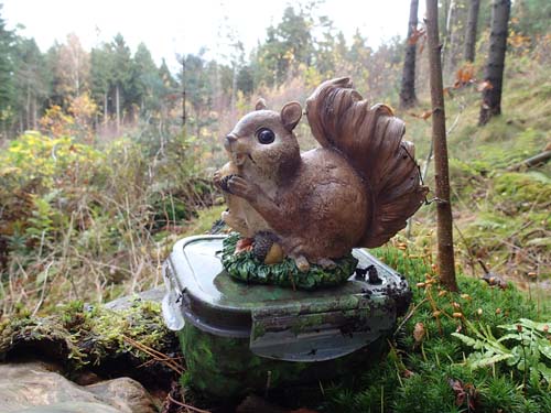 Efter framgångsrik loggning höjdes vandringstempot och jag tog mig en dryg halvkilometer till den första burken i EFG serien. Den består av sju cacher som använts för att visa upp geocaching för familjer i området, så det är ganska lätta burkar, men det var sannerligen fina burkar som nybörjarna fått del av. Här blev det favoritpoäng till burk efter burk!