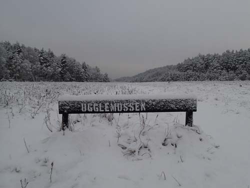 Idag rådde det full vinter, säkert två centimeter snö!! Ändå gav jag mig ut före soluppgången för att hinna med att plocka ytterligare några burkar vid Ugglemossen, denna dag räknade jag dock med fjällugglor.