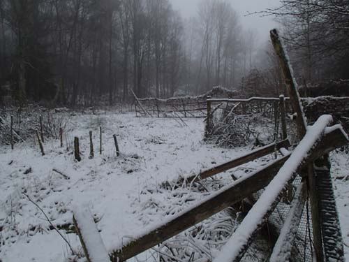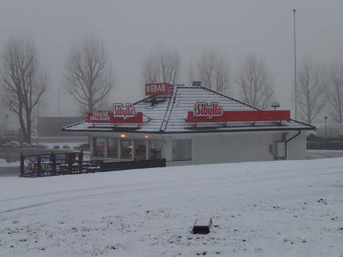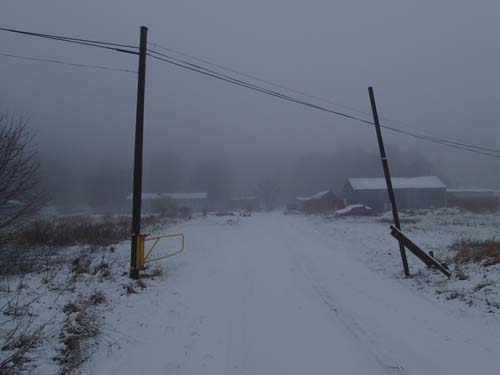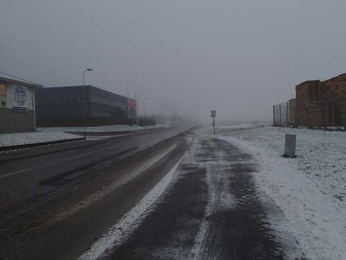 I dimma och slask blev det nu några hundra meters promenad till ”Raggarkåkar#1”, där var ödsligt och inte någon aktivitet, bilvraken en bit framåt vägen skvallrade kanske om att raggarnas bästa tid är slut!