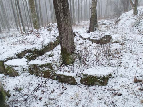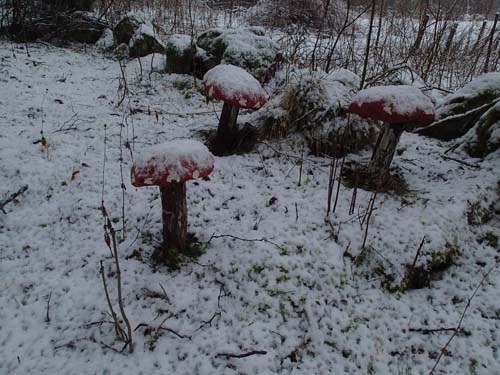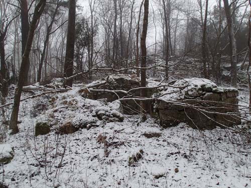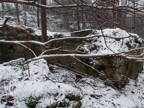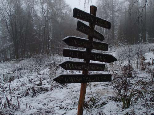 Det fanns inte många gömställen att välja på så det blev ett snabbt fynd. Nu var frågan, skulle jag avvika från den breda vägen och bege mig in i skogen? Svaret är väl självklart – JA. En bit upp på höjden ovanför industriområdet fanns en cache på en historisk plats som jag inte ville lämna ologgad. Det blev till att gå genom stiglöst land fram till ett märkligt och troligen övergivet kolonilottsområde!
