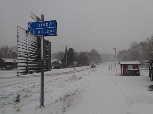 Är det en klok och god strategi att bege sig ut på vandring utmed den gamla banvallen mot Särö när det blåser och snöar…. Nej, skulle nog många stugsittare säga, men Hallén svarade – ja – på frågan som ställdes internt inom den slutna Hallén-konferensens ensliga grupp! Turen skulle gå med cachinglinjerna svart och blå denna dag, men den blå linjen visade sig vara rejält försenad så det blev en kylslagen väntan på transportmedlet, som ni kanske vet är snö=naturkatastrof och det mesta i trafiken var lite underligt, inte bara bussarna. Slutligen kom jag dock fram till den lilla knutpunkten Snipen och där kunde jag endast 40 meter från hållplatsen fånga dagens första burk ”Snipen”. Den hittades lätt och inga mugglare störde.
