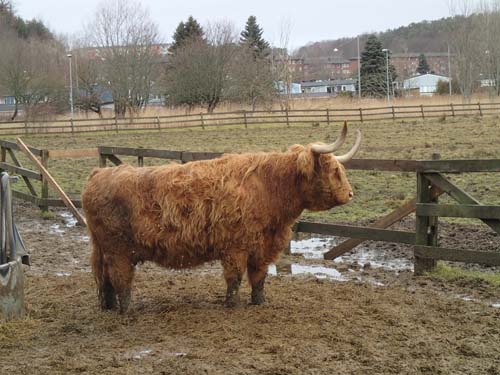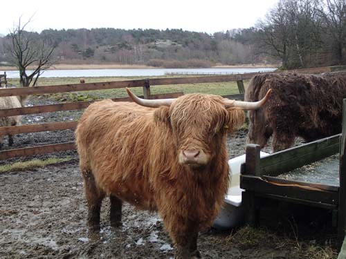 Nu fick jag leta mig tillbaka över bron för att kunna gå mot ”Naturstigen”. Vägen dit förde mig, inte så överraskande kanske, längs en naturstig! Ett riktigt fint landskap som även betades av stora lurviga varelser.