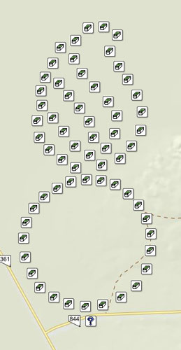 Innan den långa serien påbörjades fick vi ett infall att även logga den stora geo-arten facklan. Det blev en vandring till 65 burkar ute i ett ödsligt torkat lerlandskap med små taggiga buskar där vi gick från burk till burk. Denna geo-art gick snabbt att klara av, sen var vi redo att börja angripa den långa serien söderut.