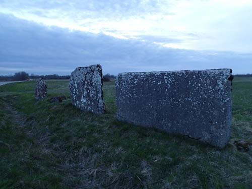 Den svaga vårsolen hade gett lite värme under dagen men när dess krafter avtog blev det snabbt riktigt kyligt. Vi bestämde oss därför att åka in mot Lidköping igen, det visade sig dessutom att dabjorks och Hallén bodde på samma hotell…. På väg in mot Lidköping fick vi dock stanna till för ytterligare en logg denna dag, det blev vid det fina fornminnet ”Tredings stenar”, en fin avslutning på denna cachingdag.