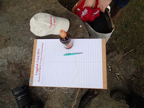 På vägen dit passade jag på att logga ”Blå Spåret” som jag av någon helt outgrundlig anledning inte hittade förra året när jag cachade i området, men idag plockades den fram omedelbart och utan problem. Vid eventplatsen för ”15 Years of Geocaching” väntade arrangören med en blank loggbok som jag fick äran att bli den första att skriva på.