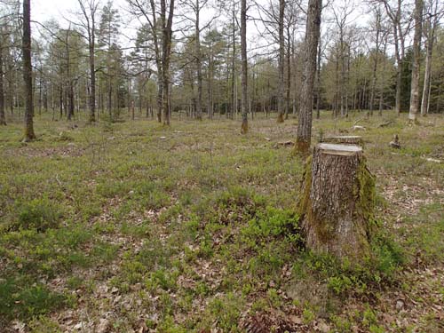 Jag gick nu tillbaka i mitt eget spår ett par kilometer innan jag vek av från den lilla grusvägen och tog mig genom skogen, som bitvis var sargad av en skogsmaskin, mot ”Råhultskogen #3”, den hittades snabbt tack vare den tydliga högen av små pinnar!
