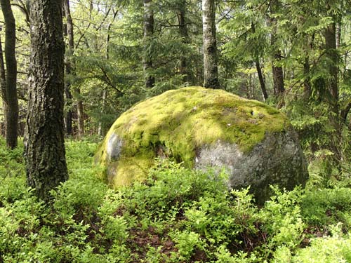 Det rådde inte någon tvekan om vilken sten som skulle dölja burken, perfekt nollpunkt. Cachen var snabbt hittad och loggad, därmed var dagens lilla cachingtur till ända och jag återvände hem genom zkogen. Då började regnet falla intensivare än de skurar som kommit tidigare. Det blev ett rejält özregn… rejält! Det var en mycket blöt burkjägare som klev in genom dörren till cachingbasen efter dryga 15 kilometers skogsvandring och två burkar rikare. Men det var ändå en riktigt fin tur idag med äkta skogscaching!