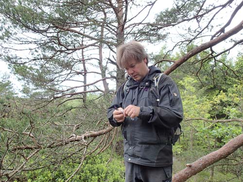 Vi anlände till cachen högst upp på den ”lilla klippan” som ni ser på bilden ovan, det var för långt att hoppa, men tillslut hittades en alternativ väg ner, men genvägar äro ofta senvägar. På dryga två timmar hade vi klarat av denna serie och började röra oss vidare mot nästan huvudmål för dagen ”Långås gröna” en serie på elva burkar. Det blev åter en fin vandring i ett vackert skogsområde som bitvis hade riktigt många besökare av arten mugglare. Dessa kunde dock inte stoppa denna trio som effektivt betade av cache, efter cache, efter cache.