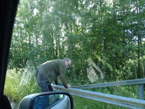 Utmed en lite lugnare småväg stannade vi för både cache och lunch i form av korv med bröd. Stärkta av detta kunde vi nu fortsätta mot vårt huvudmål i Östergötaland. Vårt mål var att avverka flera av etapperna i V Ö P T på väg söderut mot vårt boende i Ljungsbro där vi skulle upprätta vår tillfälliga cachingbas under två nätter. Men det var långt till kvällen och vandrarhemmet, först skulle det letas burk!
