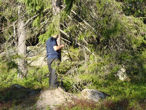 Gran efter gran besöktes och när vi närmade oss dagens slut hade omkring 230 cacher hittats, ett strålande resultat som överträffade våra förväntningar, vi hade trots allt ändå ägnat knappt halva dagen åt resan till V Ö P T området, ändå fick vi en så stor mängd burk loggat.