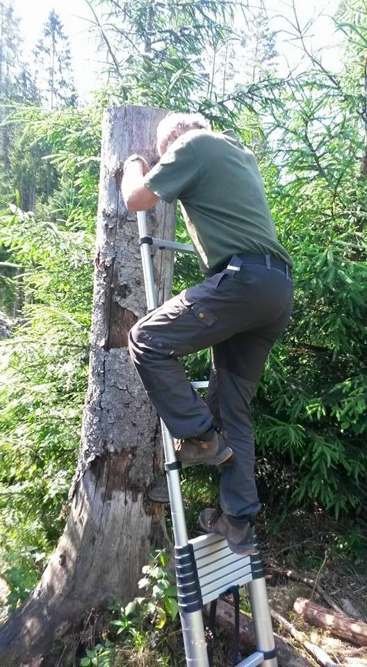 Men det fanns inte bara traditionella, även andra cachetyper ingick i serien, vilket inte är så vanligt på en PT. Dessutom var några cacher högt placerade, i de flesta fall räckte vårt metspö men i ett fall fick vi kombinera stege och metspö för att kunna logga!