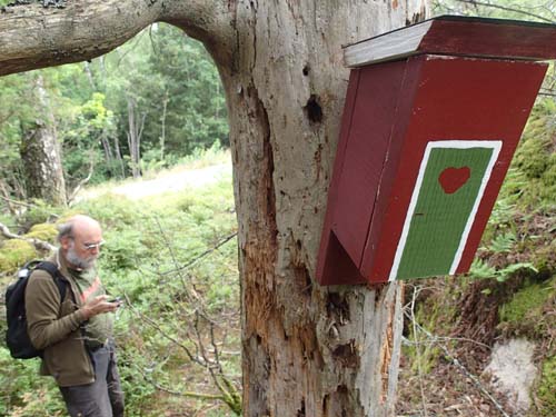 Det var varierande svårighetsgrad på burkarna utmed Lilla vägen, det blev ett par DNF:er, men flertalet hittades fram ur sina gömställen. Efter några timmars arbete nådde vi fram till den 28:e och sista burken i denna serie, var vi nöjda på burkjakt då? Icke! Vi fortsatte mot nästa serie av cacher, denna gång en vandrings slinga.
