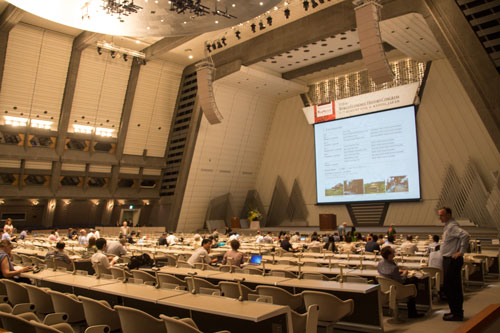 Mötets inledning hölls i den största och mest storslagna av salarna men prominenta talare och en hälsning från Japans premiärminister (som dock inte var närvarande…) Sedan följde mer normala sessioner runt om i det stora huset. Under eftermiddagen utbröt ett rejält åskväder följt av ett skyfall som under några minuter rensade luften något, men inne i byggnaden var temperaturen hela tiden perfekt, vilket var en lättnad.