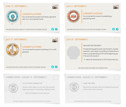 Hittills har jag lyckats få frimärken på 3 av vykorten – eller souvenirerna – i denna utmaning under 15 års firandet. Just nu pågår ”High-Five for the Earth” då det gäller att logga en Earth Cache eller ett Cito-event, det har jag inte hunnit med ännu, men vem vet kanske dyker möjligheten snart upp till en logg som resulterar i ett frimärke.