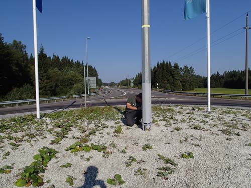 Vi passade även på att göra ett återbesök i en rondell med flaggor där vi varit förr, men där fanns nu en ny burk. Drygt tio burkar hittades utmed vägen till dagens första vandringsslinga.