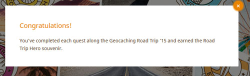 Congratulations! You’ve completed each quest along the Geocaching Road Trip ’15 and earned the Road Trip Hero souvenir, meddelades det mig idag. Detta i och med att en Earth Cache loggats under gårdagens geocachingtur. Hamnade på plats #28,696, Ingabo lyckades, enligt egen utsago, komma bland de 5000 första att plocka hem full pott…