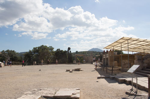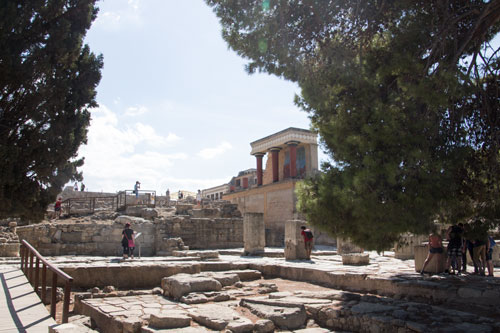 Till sist hittade vi även fram till finalen och vårt mål vid Knossos. Detta enorma palatsområde ligger inom synhåll från Anemospilia och flera av de andra platserna vi besökt under dagen. Knossos var givetvis öppet och nästan omedelbart möttes vid av superminoen Evans….