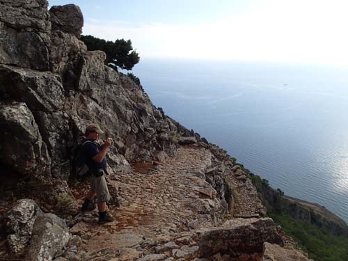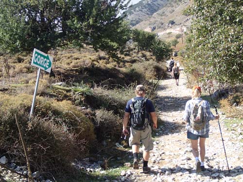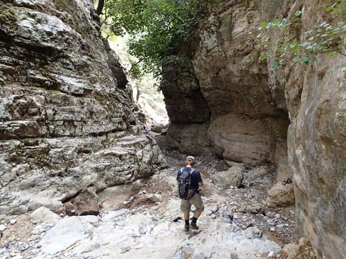 En vandring i en djup dalgång är väl ett måste när man är på Kreta? Imbros Gorge har en speciell historia då den var flyktväg för tusentals brittiska, nya nyzeeländska och australiska soldater 1941 när tyska styrkor hade erövrat nordsidan av ön. Det var i deras fotspår vi skulle följa under dagens burkletarrunda, lämpligt nog började vi med att logga ”Escape Route”.