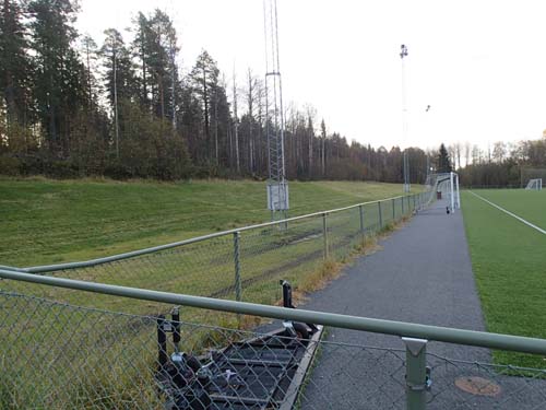 Detta fynd lockade mig att gå lite till bland träden och snart var jag framme vid ”Forrest Gump” där jag fick leta en liten stund innan den lilla burken ville uppenbara sig. Förmiddagspromenaden avslutades sedan inne i ett bostadsområde, där det var oväntat mugglarfritt, därmed kunde även cachen ”Sneaking behind the corner” få en Hallén signatur i remsan.