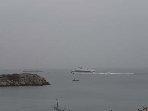 Efter denna goda start på dagen gick vi med raska steg rakt över den lilla ön i riktning mot ”Vrångö Lotsutsikt”. Vacker utsikt var det från platsen trots disigt och mulet väder.