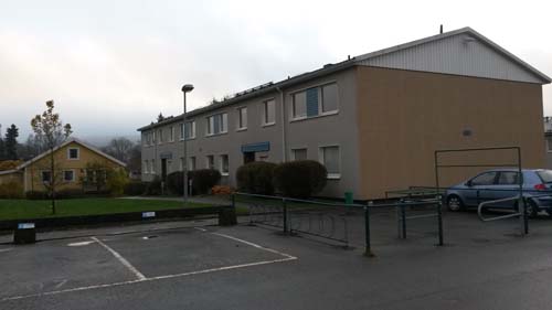 Efter lite inhandlande av drivmedel för cachingturer (mat alltså) gick vandringen tillbaka mot cachingbasen där jag utanför min dörr påträffade rep som ledde ut genom fönstret och utanför klättrade en mugglare och vid fönstret i trappuppgången stod en annan mugglare på och hjälpte till…. trodde först att det var någon fräck typ som försökte fästa en T5:a rakt utanför min cachingbas, men det visade sig bara vara några fasad-jobbar-mugglare som var i farten.