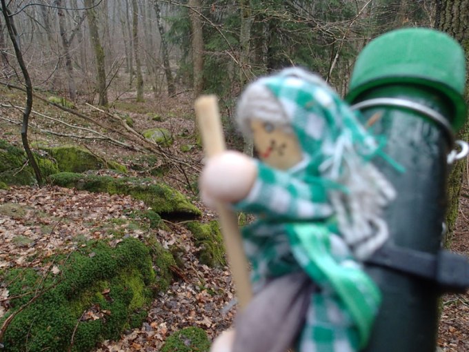 Uppdraget denna långfredag var att plocka några av de påskrelaterade burkarna som publicerats i trakten av Björndammen. Jag började med att jaga en häxa vid ”Julen varar än till påska! 2 Skärtorsdag”, den vållade inte några problem och jag kunde ta hand om häxan innan hon fick för sig att föra mig till blåkulla!