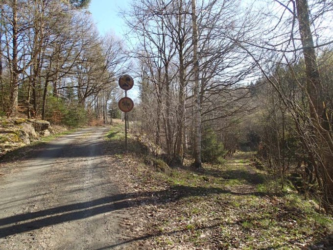 Slutligen nådde jag då bommen som effektivt stoppar alla motorfordon, men Hallén med geo-kängor stoppas inte av dessa anläggningar eller skyltar, burkletandet måste fortsätta.