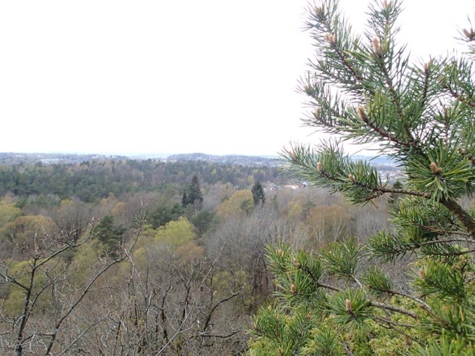 Med god Hallénfart tog jag mig österut, in i Partilles skogar och upp mot bergen ovanför Puketorp med gps:en inställd och geopennan vässad. Stigen slingrade sig upp på berget och snart var jag framme vid nollpunkten. Där började jag leta där det fanns en del avbrutna grenar, men rotandet gav inte något resultat. Jag gav mig då längre ut mot stupet och insåg att det gällde att inte ens ta ett halvsteg bakåt från där jag stod – då hade det varit slut på Halléns Geocachingäventyr för all framtid! Efter att ha tagit mig runt och delvis igenom en tall med tillhörande grenar på ett något riskabelt sätt valde jag att läsa igenom tidigare loggar. Där talade jsson om att hon hade ställt ned ryggsäcken och strax bredvid hittades burken som lyckligtvis inte hade åkt in för långt. Låt mig se var kan man bäst sätta ned en ryggsäck och var kan det finnas en plats där burkan kan åka in för långt? Efter några minuter hade jag hittat en sådan plats och där fanns även burken. Lyckan var stor!