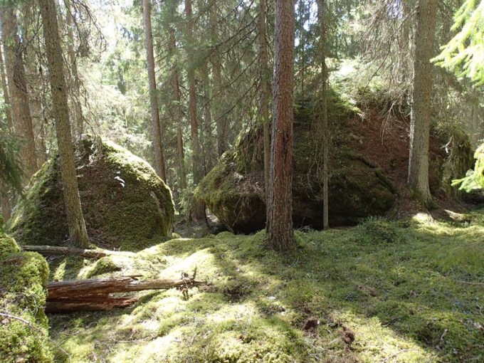 Det var mycket varierande terräng, tät skog, mossar och sankmarker, kalhyggen, branta berg – både upp och ned, stora klippblock att betvinga – kan villigt erkänna att det var trevligt att kunna ge teamet en logg på rundans T4:a – de andra grisarna hade nämligen lite svårigheter att ta sig in i den smala passagen och upp på det stora flyttblocket vid ”IRFV #42”. Denna tid på året var förhållandena i skogen mycket gynnsamma. Vi hade värme, men inte allt för mycket, det var ganska torrt så mossarna var inte så besvärande och myggen hade ännu inte vaknat, inte heller andra besvärande insekter.