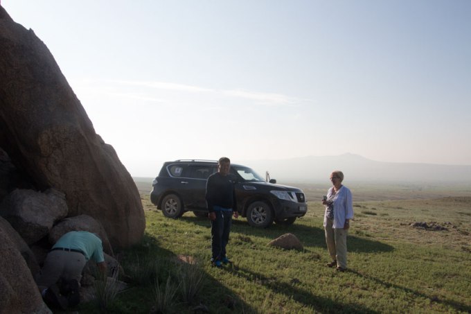 Balsaa Luvsan var vår förare under större delen av resan och han hade fått oss att bli beroende av mongolisk-häst-heavy-metall (kan inte beskrivas, måste upplevas). Han ställde villigt upp med att föra oss till bergen igen för att leta upp cachen. Vi hade räknat med en liten promenad, men vi hade glömt bort att detta var Mongoliet där allt kan förvandlas till en drive-in, så även ”Hard Rock”.