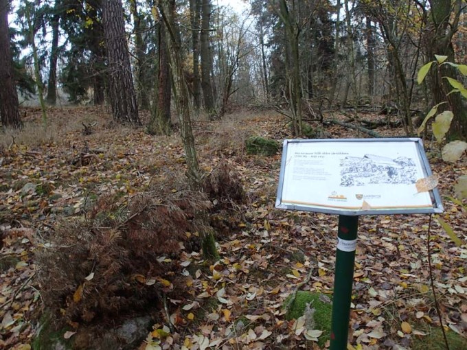 Nu var det dags och lämna asfalten och gå ut i Vallaskogen och dess fina burk- och fornlämningslandskap. ”På stadig mark” verkade inte ligga vid någon fornlämning, snarast något som borde vara en rest efter militärens aktivitet i område.