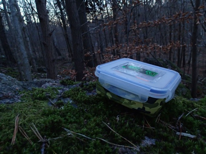 Jag letade mig upp på det lilla berget och snart hade rätt sten lokaliserats. Då började en hund nere på stigen att skälla intensivt, tydligen gillade den inte geocachare, men det var inte något att bry sig om utan jag fortsatte att signera loggboken, återplacera burken och gå vidare på denna dags motionsrunda. Den närbelägna multin lät jag ligga tills dess att koordinattrasslet som det talades om i nattens loggar skulle bli löst. Det ser glädjande nog ut att vara åtgärdat i skrivande stund så kanske kan man se om det går att logga, men T4 – det kan bli riktigt svårt…
