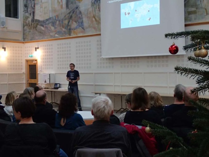 Föredraget blev något kortare än väntat så vi fick ändra lite i programmet och låta tomten (bgr01) ordna med utdelningen av paket. När paketen var öppnade och fikat på vårt eventbord började ta slut så var det dags för undertecknad att träda i aktion med att inleda reseberättelsen kring Mongoliet 2016.