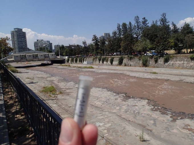 Eftermiddagen den 27 februari lyfte Hallén från Landvetters flygplats och färdades mot Paris där ett nytt flyg väntade för resan över Atlanten och vidare rakt över Sydamerika till Santiago de Chile, drygt 14 timmar i luften. Den sista biten av flygningen var spektakulär med klart väder över Anderna och dess gigantiska berg. Närmare Chiles huvudstad var bergen inte längre lika höga men ändå var det ett mycket vackert landskap kring staden. Det blev snabbaste vägen in mot hotellet med taxi och en välbehövlig dusch efter långflygningen. Visserligen känner man sig lite trött efter en sådan resa men gps:en var det första som packades upp och snart var jag ute på gatorna i detta ”nya land”. Första hittade burken blev ”Mapocho Limpio”, men någon ytterligare cache blev det inte denna eftermiddag, däremot flera DNF:er, men flera av dessa kom att hittas följande dag, det märktes att tankeförmågan var nedsatt efter resan!