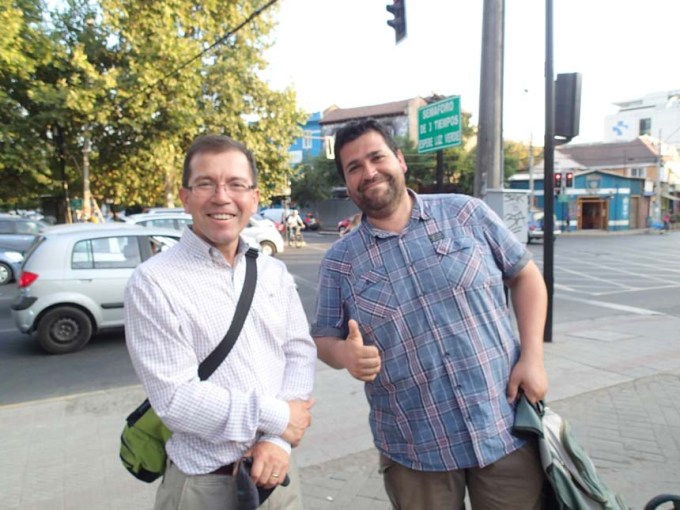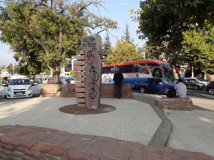 Vid event koordinaterna fanns också en burk – som av en händelse… ”Plaza Montecarmelo” som jag och den första eventdeltagaren Mig144000 snart hade letat upp. Snart anslöt även en av medlemmarna i Team Kawesqar upp, därmed var vi tre! Inte direkt ett mega event, men ändå mycket trevligt att få träffa några lokala geocachare. När eventet nästan var slut kom Ratolibre till eventplatsen. Vi bestämde oss för att det kanske kunde vara trevligt med lite bonuscaching så vi loggade gemensamt ”Puente Racamalac” och ”Τρεισκαιδέκαφοβία”, därmed hade det blivit ytterligare tre burkar och ett event loggat denna heldag i den chilenska huvudstaden.