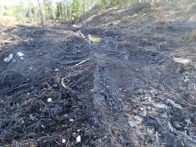 Ett stycke längre fram på trailen kom jag in ett område där skogsmaskinerna härjat och efterlämnat många leriga spår.