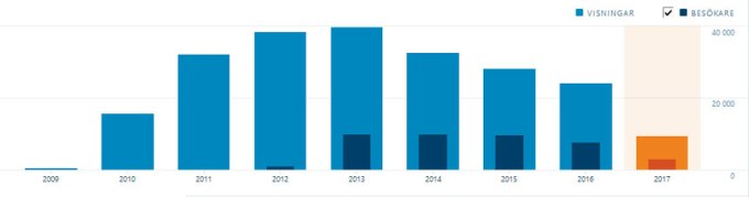 Toppåret var 2013, sedan dess har det bara gått utför med antalet besök på denna geocachingblogg, inte ens reseberättelserna från Antarktis lockade några stora skaror.