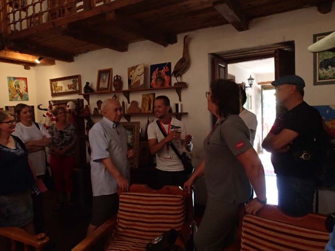 Tiranas borgmästare, nuvarande premiärministern, Edi Rama, gjorde sig känd när han arbetade för att sätta färg på den grå betongstaden. Han gick i lära hos Sali Shijaku, som råkade vara på plats när vi kom så det blev en introduktion till konsten i huset, dessvärre fanns det ingen burk undangömd i hyllorna som var loggbar.