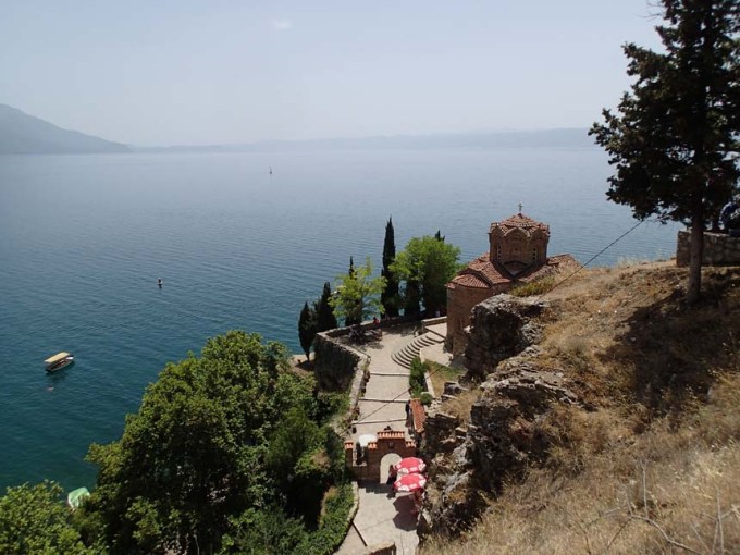 Jag inledde eftermiddagsturen med ”Ohrid Lake at your hands”, en fantastiskt vacker udde med en mindre ortodox kyrka. Den omvandlades inte till moské av turkarna då byggnaden istället användes som en plats där man bevakade sjön.