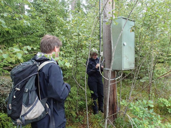 När vi höll på att logga första burken kom det en mugglare med hund som tittade som om det skulle vara något märkligt med fyra personer bakom en stolpe…. Han frågar då – räknar ni hjortar? Mycket skall man höra! Men, det är kanske en hobby att börja ägna sig åt möjligen, eller möjligen inte. Då vi inte ville framstå som några stolpskott så gick vi raskt in i skogen för att leta upp gömmans små burkar i alla möjliga former. Ute i skogen träffade vi även på andra varelser, alltid lika trevligt att vara ute i trollskogen. Ett släktmöte med andra ord….