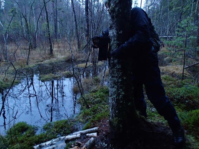 Den 17 november 1995 förlamades Göteborgsregionen av en snöstorm (se länk till GP). Någon risk för något liknande den 18 november 2017 borde väl inte finnas, det såg ut att vara en mild och normal höstdag. Team H I T (Hallén, Ingabo, TMR68) bestämde därför att genomföra en tur i närområdet, närmare bestämt till ”Spionecks prövningar”. Vi har tidigare brottats med dessa många gånger mycket kluriga cacherna så vi var redo för ”det värsta”. Vid dagens första burk mötte oss ett mycket blött område. Cachen låg i kanten av det blöta och det krävdes att vi byggde upp lite ny mark med hjälp av pinnar och grenar, samt lite trädkramande.