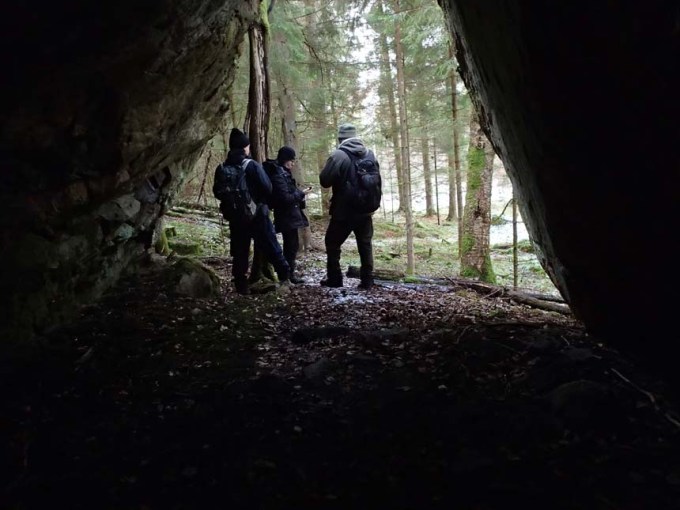 När vi lämnat skogsmaskinernas härjningar bakom oss för en stund var det trevligt att komma in mellan träd, och ibland även in i små grottor. Vi kände oss alla som riktiga stenåldersmänniskor!